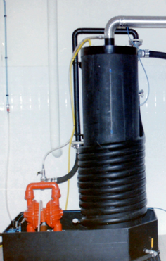 The inlet of the pump is connected with the vertical tubular reservoir and the pressure side of the pump and the ejector are connected by means of a flexible reinforced hose made of EPDM and a fixed pipe of Polyethylene. All connections are made of Stainless steel.